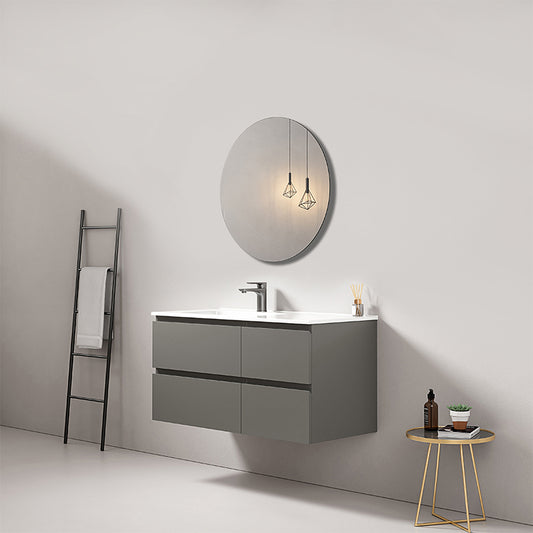 Mobile bagno sospeso 100 cm Grigio Londra Lavabo in Ceramica Specchio Tondo - Fiji Paint