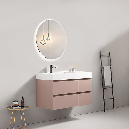 Mobile bagno sospeso 100 cm Rosa Retro Lavabo in Resina Specchio Tondo Retroilluminato - Fiji Paint