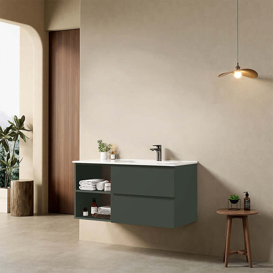 Mobile bagno sospeso 100 cm Verde Comodoro Lavabo a Destra in Ceramica Senza Specchio - Fiji Paint Plus