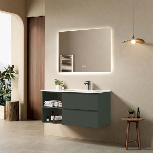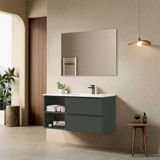 Mobile bagno sospeso 100 cm Verde Comodoro Lavabo a Destra in Ceramica Specchio Quadro - Fiji Paint