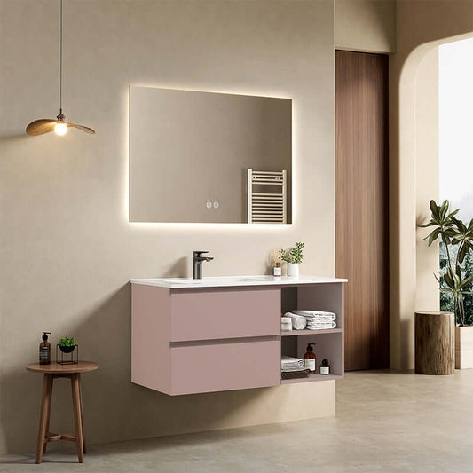 Mobile bagno sospeso 100 cm Rosa Retro Lavabo a Sinistra in Ceramica Specchio Quadro Retroilluminato - Fiji Paint Plus
