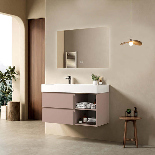 Mobile bagno sospeso 100 cm Rosa Retro Lavabo a Sinistra in Resina Specchio Quadro - Fiji Paint Plus