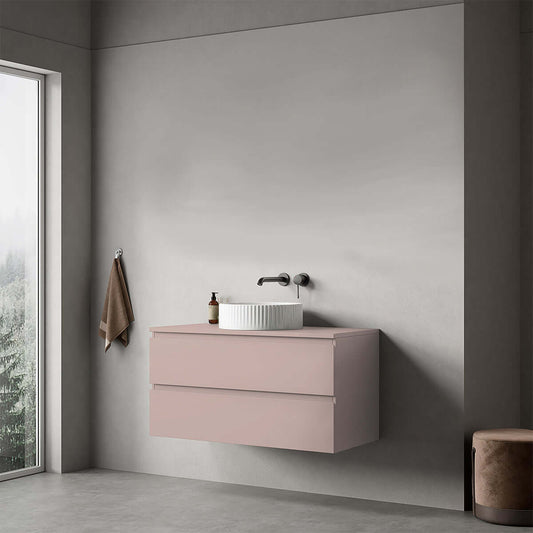 Mobile bagno sospeso 100 cm Rosa Retrò per Lavabo d'appoggio Senza Specchio - Fiji Paint Top