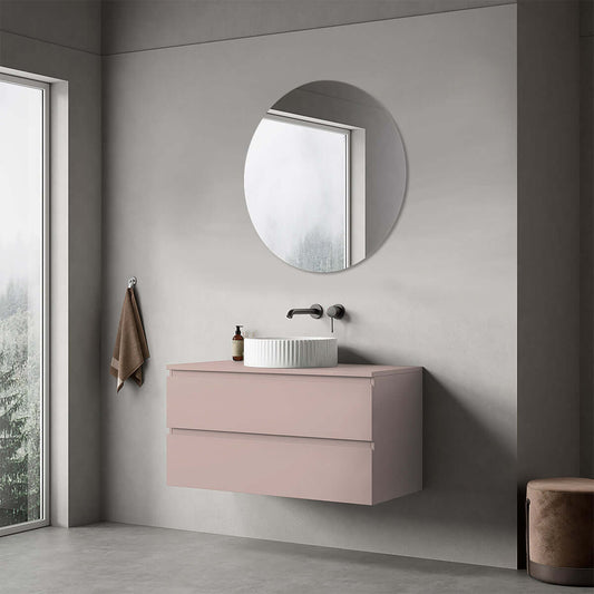 Mobile bagno sospeso 100 cm Rosa Retrò per Lavabo d'appoggio Specchio Tondo - Fiji Paint Top