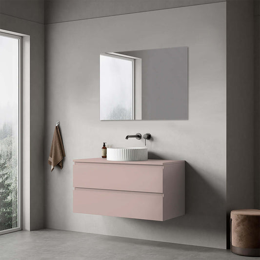 Mobile bagno sospeso 100 cm Rosa Retrò per Lavabo d'appoggio Specchio Quadro - Fiji Paint Top