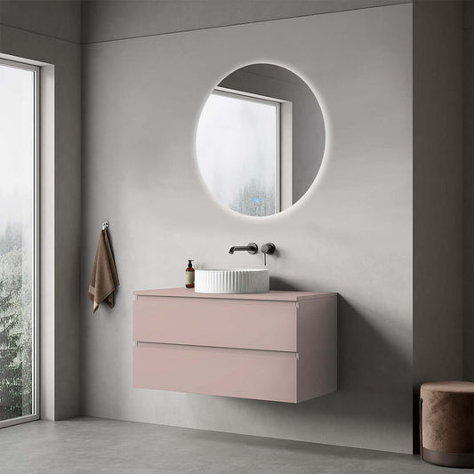 Mobile bagno sospeso 100 cm Rosa Retrò per Lavabo d'appoggio Specchio Tondo Retroilluminato - Fiji Paint Top