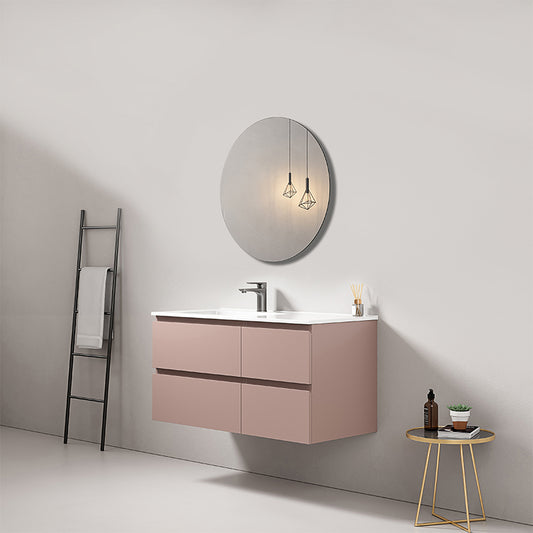 Mobile bagno sospeso 100 cm Rosa Retro Lavabo in Ceramica Specchio Tondo - Fiji Paint
