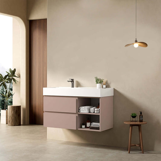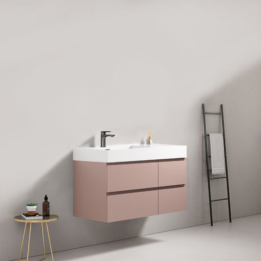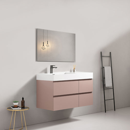 Mobile bagno sospeso 100 cm Rosa Retro Lavabo in Resina Senza Specchio - Fiji Paint