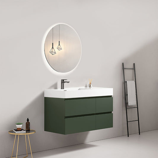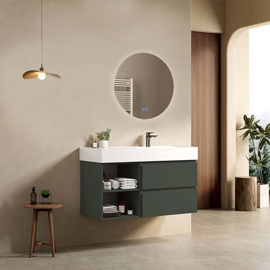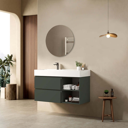 Mobile bagno sospeso 100 cm Verde Comodoro Lavabo a Destra in Resina Specchio Tondo - Fiji Paint