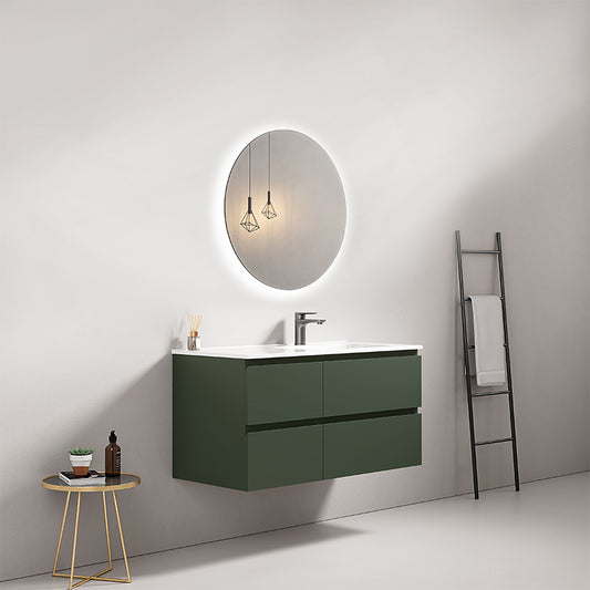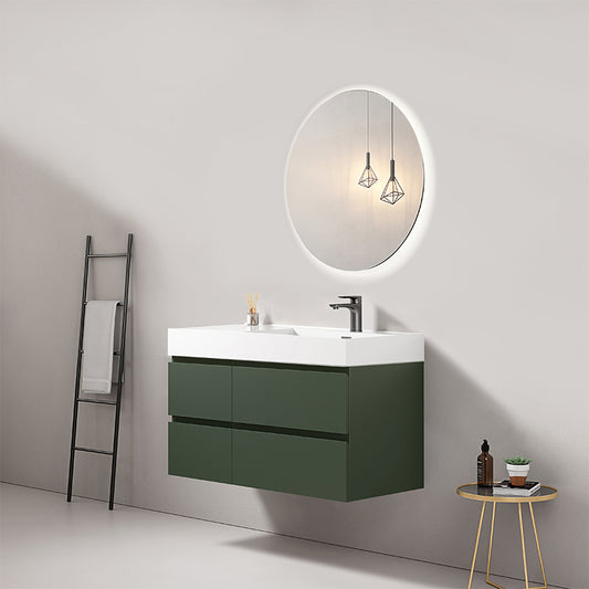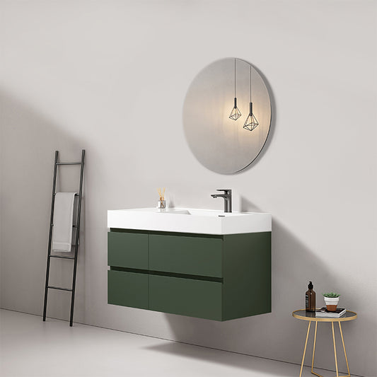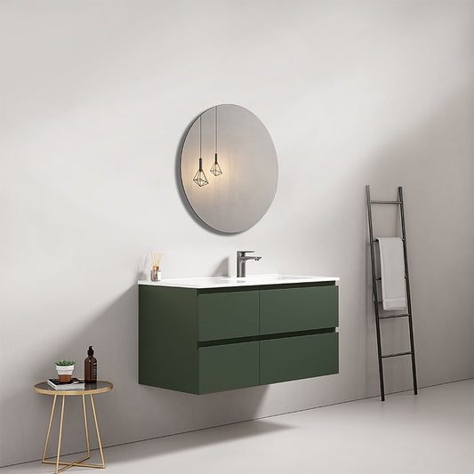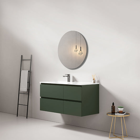 Mobile bagno sospeso 100 cm Verde Comodoro Lavabo a Sinistra in Resina Specchio Tondo - Fiji Paint Plus