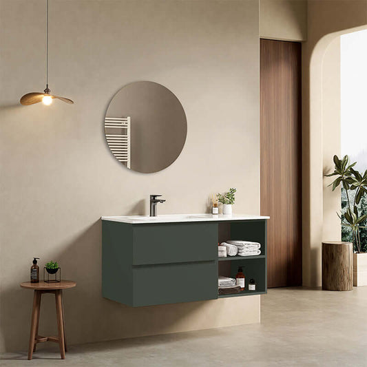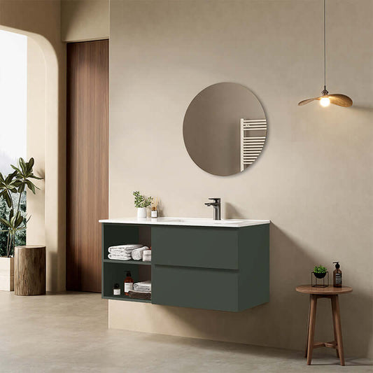 Mobile bagno sospeso 100 cm Verde Comodoro Lavabo a Destra in Ceramica Specchio Tondo - Fiji Paint