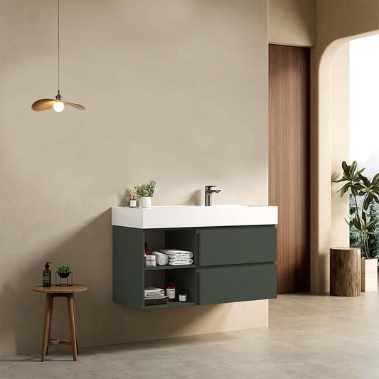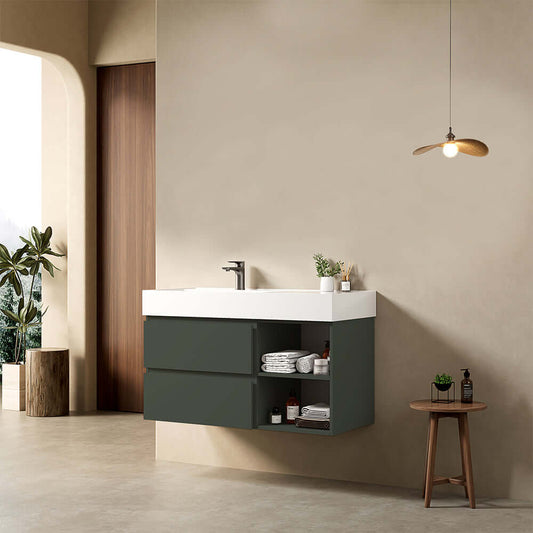 Mobile bagno sospeso 100 cm Verde Comodoro Lavabo a Destra in Resina Senza Specchio - Fiji Paint