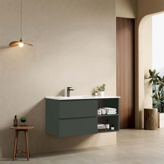 Mobile bagno sospeso 100 cm Verde Comodoro Lavabo a Sinistra in Ceramica Senza Specchio - Fiji Paint Plus