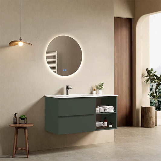 Mobile bagno sospeso 100 cm Verde Comodoro Lavabo a Destra in Ceramica Specchio Tondo - Fiji Paint Plus