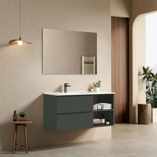 Mobile bagno sospeso 100 cm Verde Comodoro Lavabo a Sinistra in Ceramica Specchio Quadro - Fiji Paint
