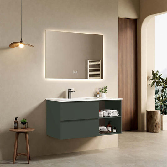 Mobile bagno sospeso 100 cm Verde Comodoro Lavabo a Sinistra in Ceramica Specchio Quadro Retroilluminato - Fiji Paint