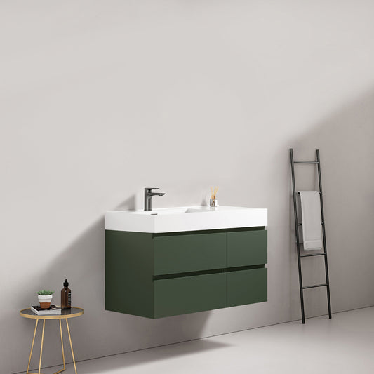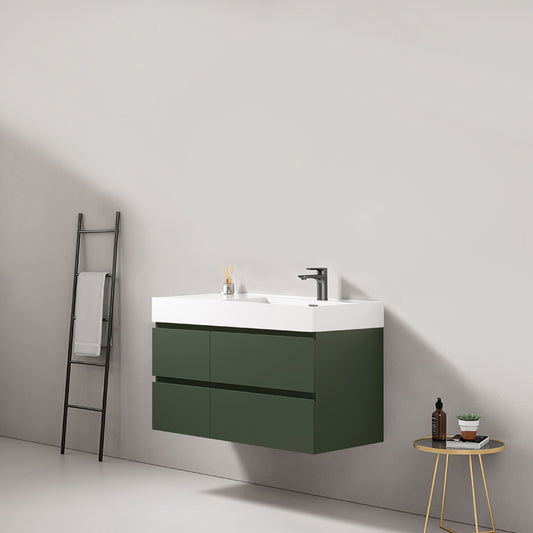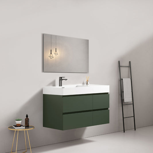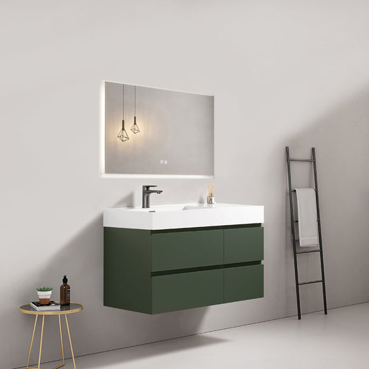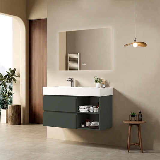 Mobile bagno sospeso 100 cm Verde Comodoro Lavabo a Sinistra in Resina Specchio Quadro - Fiji Paint