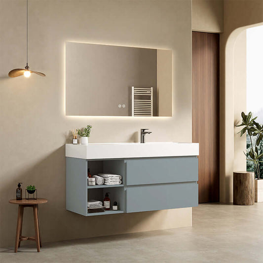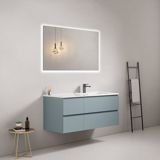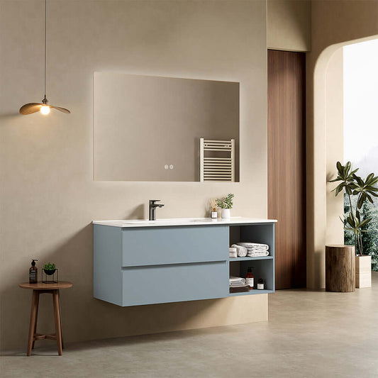 Mobile bagno sospeso 120 cm Blu Avio Lavabo a Destra in Ceramica Specchio Quadro Retroilluminato - Fiji Paint Plus