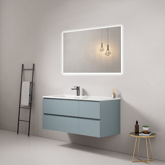Mobile bagno sospeso 120 cm Blu Avio Lavabo a Sinistra in Ceramica Specchio Quadro Retroilluminato - Fiji Paint Plus
