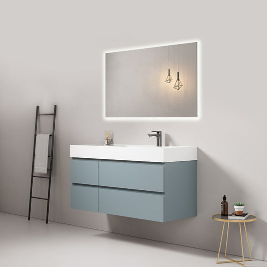 Mobile bagno sospeso 120 cm Blu Avio Lavabo a Destra in Resina Specchio Quadro Retroilluminato - Fiji Paint Plus