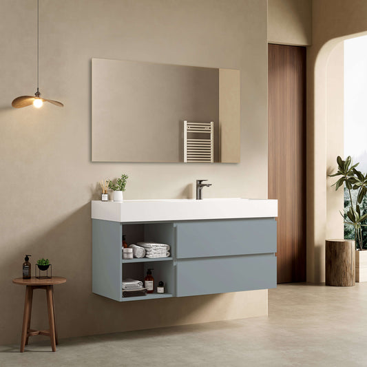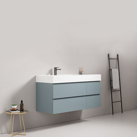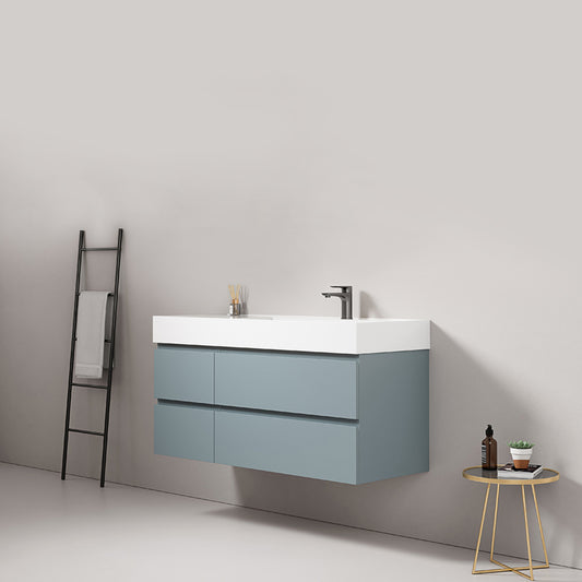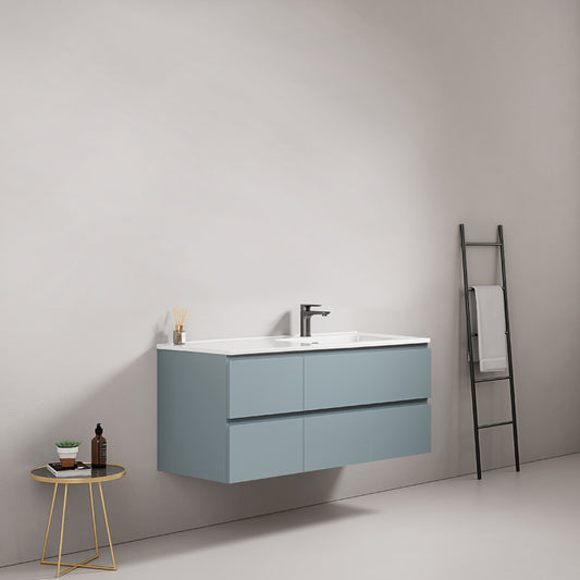 Mobile bagno sospeso 120 cm Blu Avio Lavabo a Destra in Resina Senza Specchio - Fiji Paint