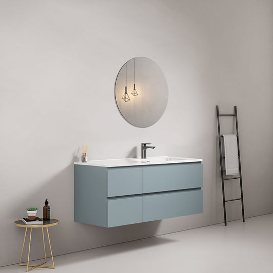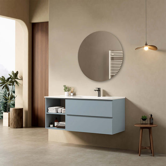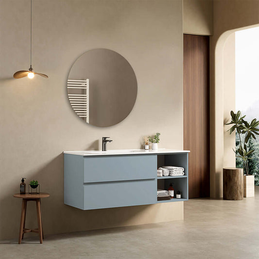 Mobile bagno sospeso 120 cm Blu Avio Lavabo a Destra in Ceramica Specchio Tondo - Fiji Paint