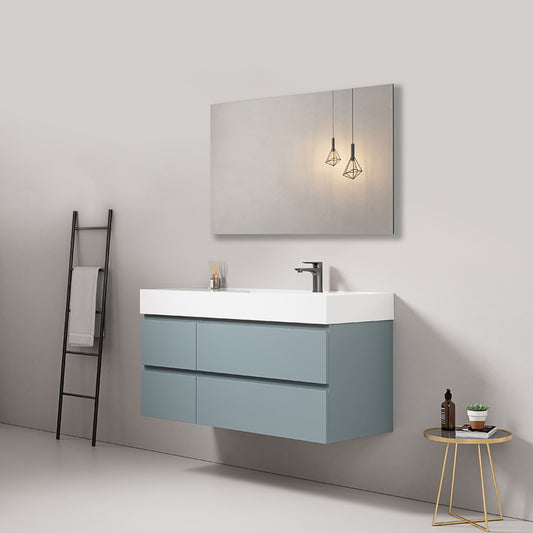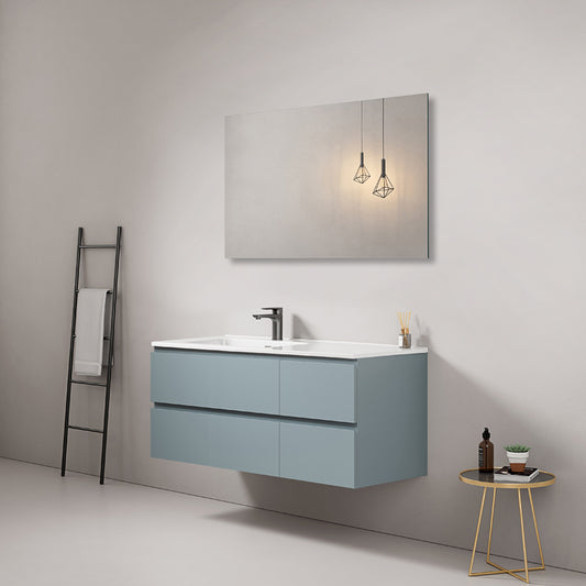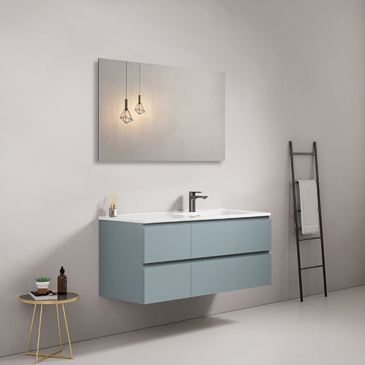 Mobile bagno sospeso 120 cm Blu Avio Lavabo a Destra in Resina Specchio Quadro - Fiji Paint