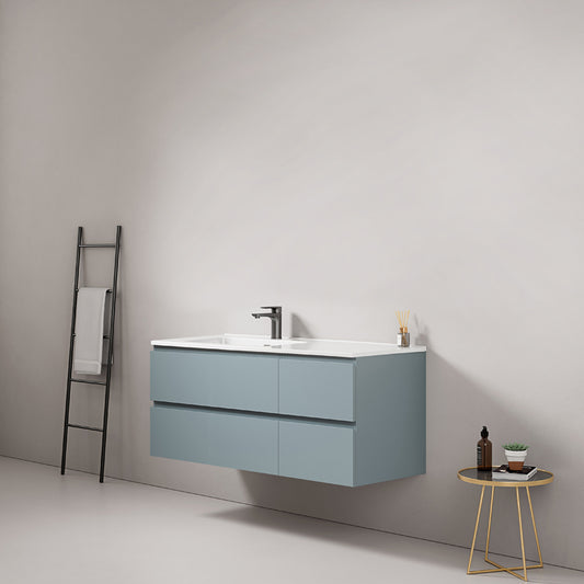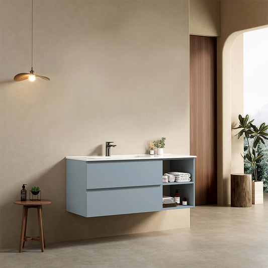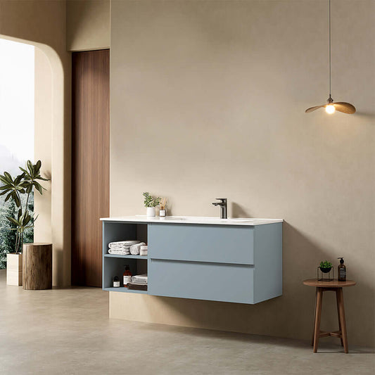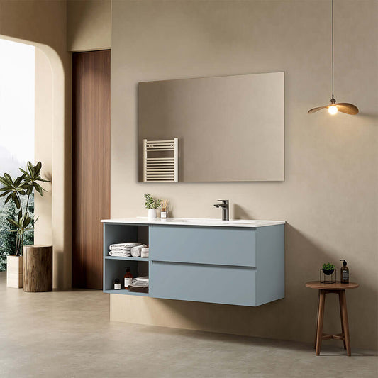 Mobile bagno sospeso 120 cm Blu Avio Lavabo a Sinistra in Ceramica Senza Specchio - Fiji Paint Plus