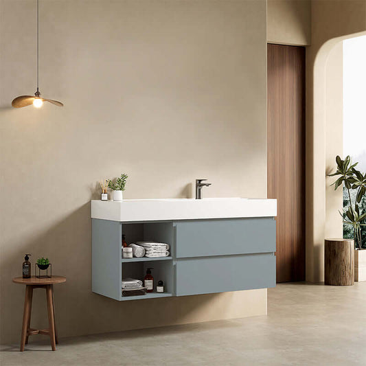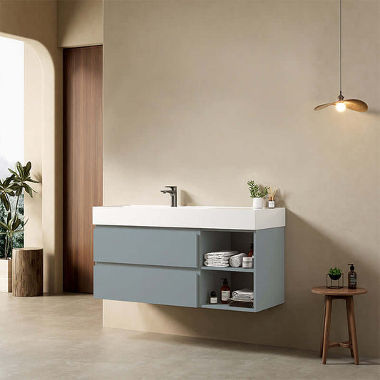 Mobile bagno sospeso 120 cm Blu Avio Lavabo a Destra in Resina Senza Specchio - Fiji Paint Plus