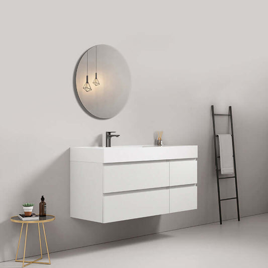 Mobile bagno sospeso 120 cm Bianco Lavabo a Sinistra in Resina Specchio Tondo - Fiji Wood