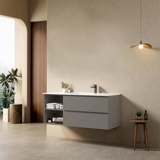 Mobile bagno sospeso 120 cm Grigio Londra Lavabo a Sinistra in Ceramica Senza Specchio - Fiji Paint