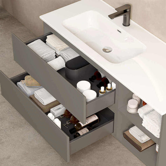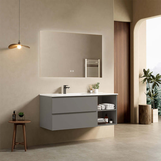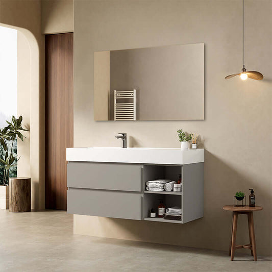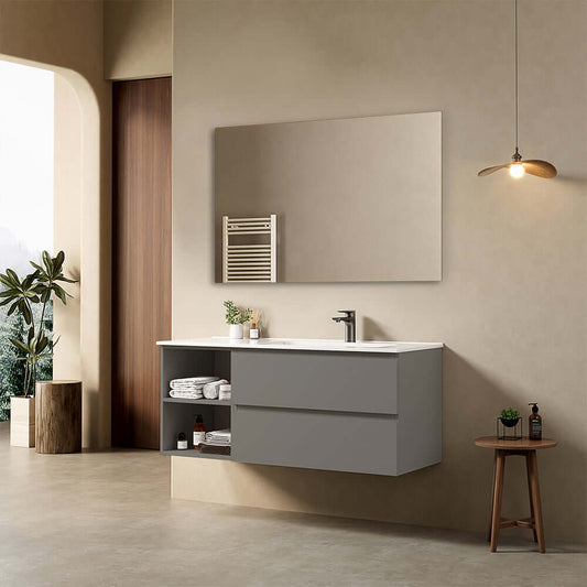 Mobile bagno sospeso 120 cm Grigio Cenere Lavabo a Sinistra in Resina Specchio Quadro - Fiji Paint Plus