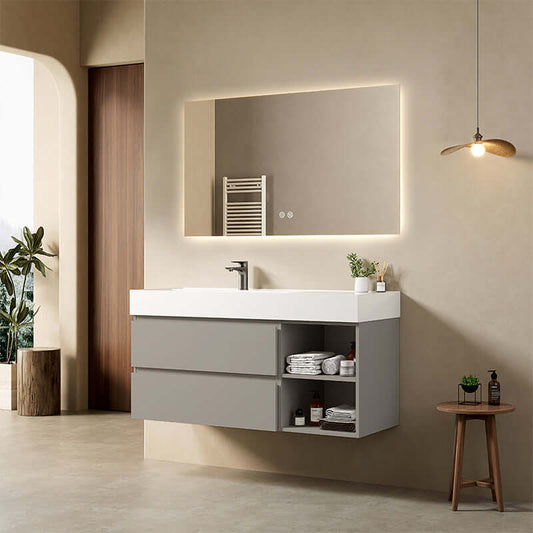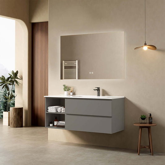 Mobile bagno sospeso 120 cm Grigio Cenere Lavabo a Sinistra in Resina Specchio Quadro Retroilluminato - Fiji Paint Plus