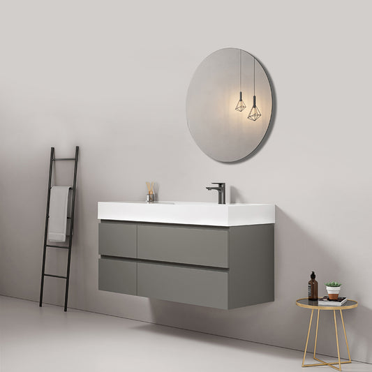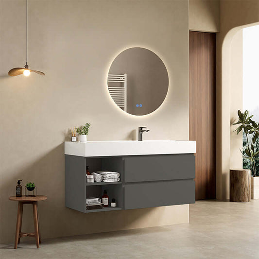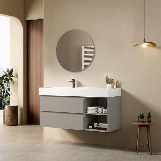 Mobile bagno sospeso 120 cm Grigio Cenere Lavabo a Sinistra in Resina Specchio Tondo - Fiji Paint Plus