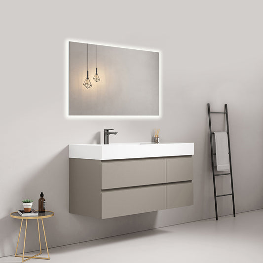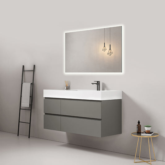 Mobile bagno sospeso 120 cm Grigio Cenere Lavabo a Sinistra in Resina Specchio Quadro Retroilluminato - Fiji Paint