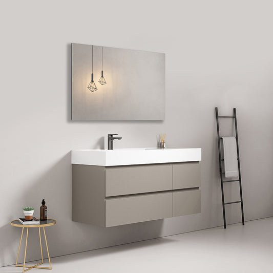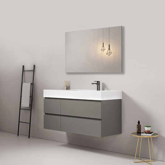 Mobile bagno sospeso 120 cm Grigio Cenere Lavabo a Sinistra in Resina Specchio Quadro - Fiji Paint