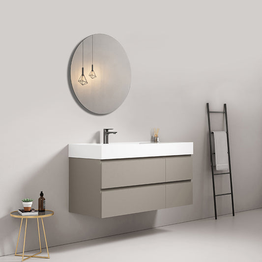 Mobile bagno sospeso 120 cm Grigio Cenere Lavabo a Sinistra in Resina Specchio Tondo - Fiji Paint