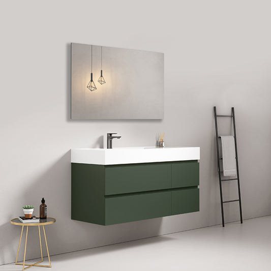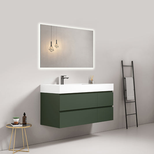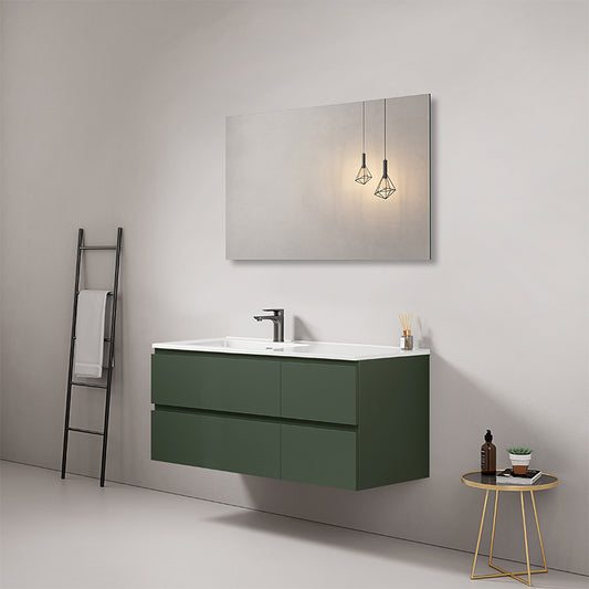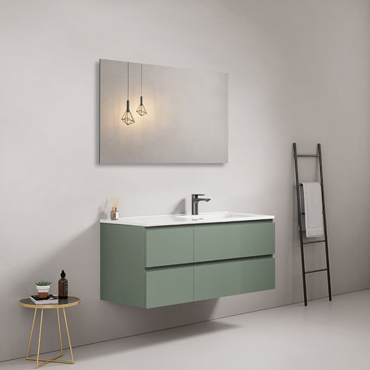 Mobile bagno sospeso 120 cm Verde Comodoro Lavabo a Sinistra in Resina Specchio Quadro - Fiji Paint