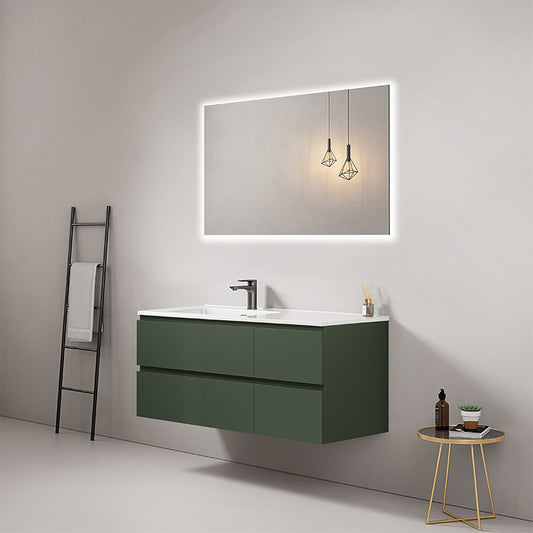 Mobile bagno sospeso 120 cm Verde Comodoro Lavabo a Sinistra in Resina Specchio Quadro Retroilluminato - Fiji Paint Plus