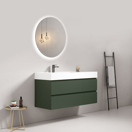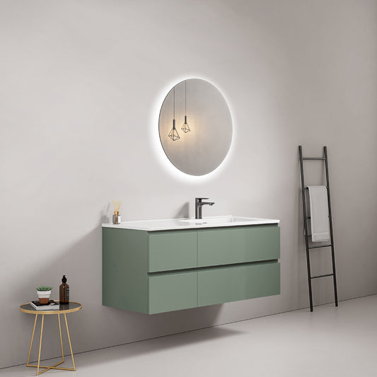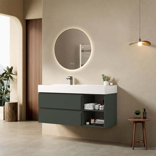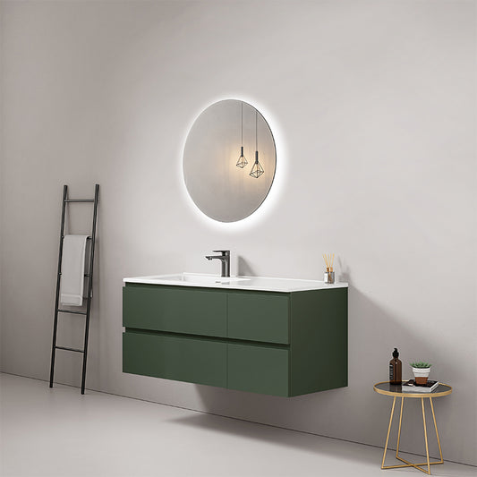 Mobile bagno sospeso 120 cm Verde Comodoro Lavabo a Sinistra in Resina Specchio Tondo Retroilluminato - Fiji Paint