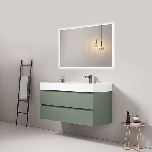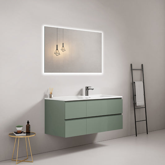 Mobile bagno sospeso 120 cm Verde Salvia Lavabo a Destra in Resina Specchio Quadro Retroilluminato - Fiji Paint