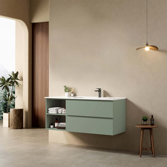 Mobile bagno sospeso 120 cm Verde Salvia Lavabo a Destra in Ceramica Senza Specchio - Fiji Paint Plus