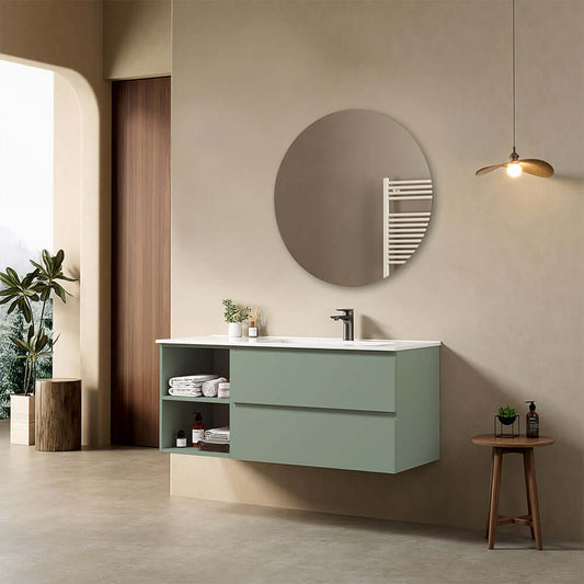 Mobile bagno sospeso 120 cm Verde Salvia Lavabo a Destra in Ceramica Specchio Tondo - Fiji Paint Plus