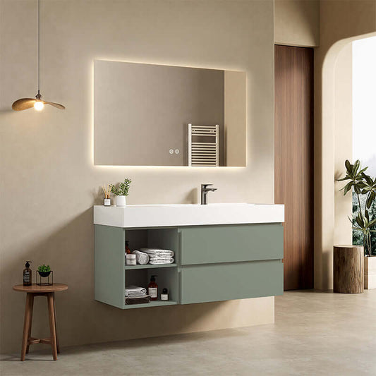 Mobile bagno sospeso 120 cm Verde Salvia Lavabo a Destra in Resina Specchio Quadro - Fiji Paint