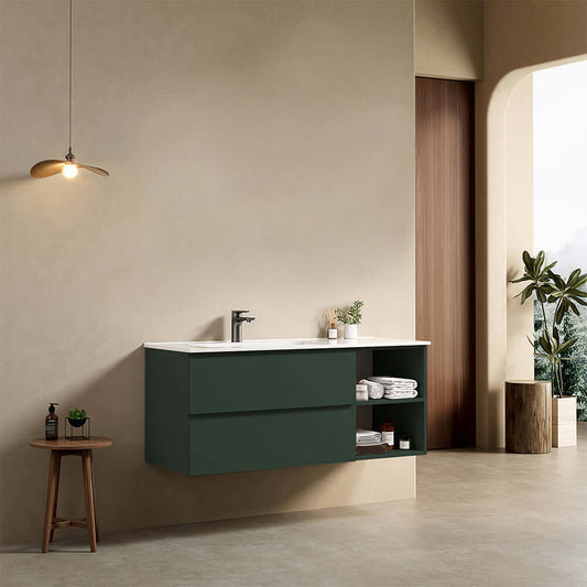 Mobile bagno sospeso 120 cm Verde Comodoro Lavabo a Sinistra in Ceramica Senza Specchio - Fiji Paint