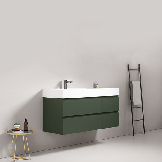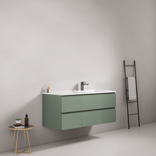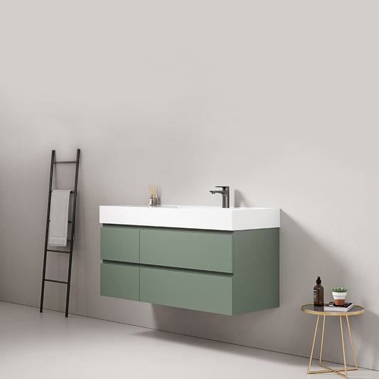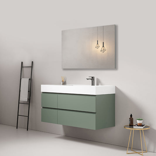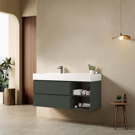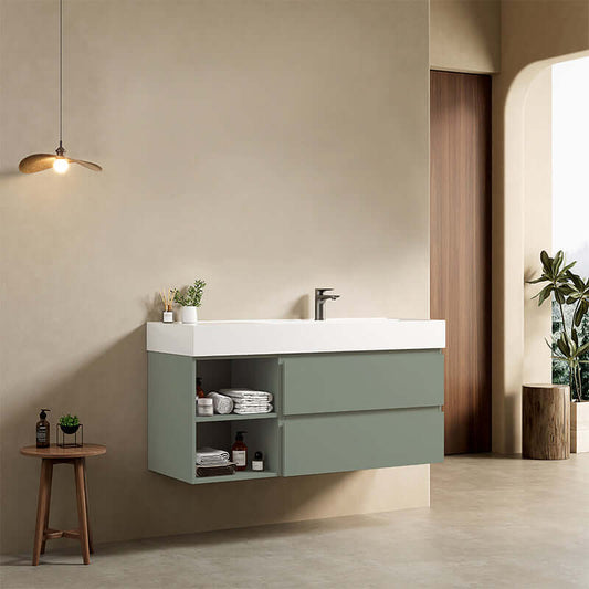 Mobile bagno sospeso 120 cm Verde Salvia Lavabo a Destra in Resina Senza Specchio - Fiji Paint Plus