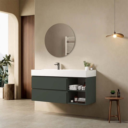 Mobile bagno sospeso 120 cm Verde Comodoro Lavabo a Sinistra in Resina Specchio Tondo - Fiji Paint Plus
