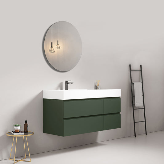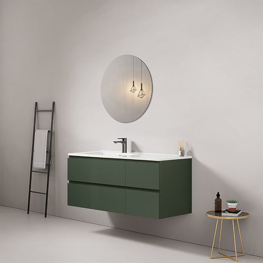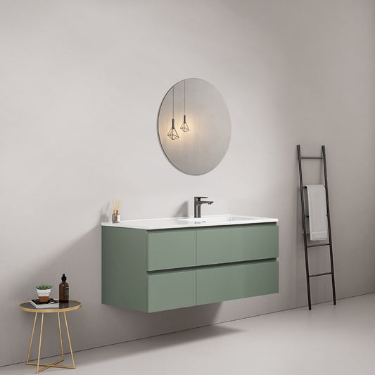 Mobile bagno sospeso 120 cm Verde Comodoro Lavabo a Sinistra in Resina Specchio Tondo - Fiji Paint