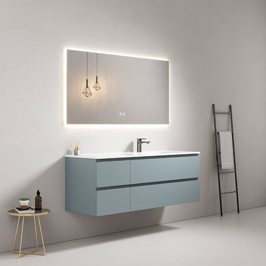 Mobile bagno sospeso 140 cm Blu Avio Lavabo a Destra in Resina Specchio Quadro Retroilluminato - Fiji Paint Plus