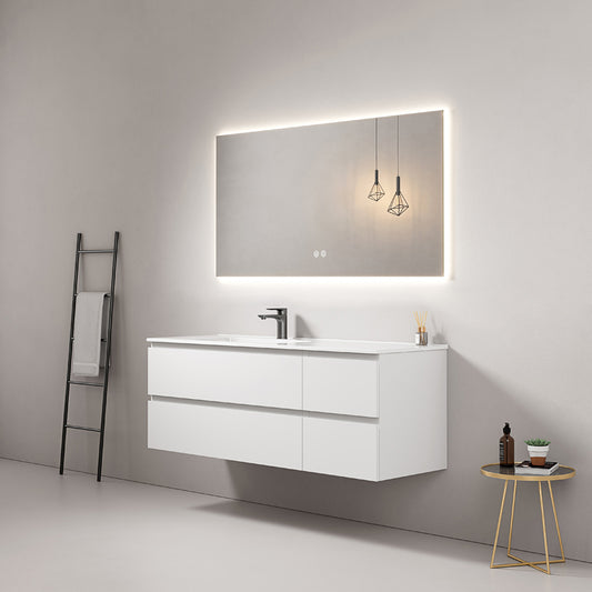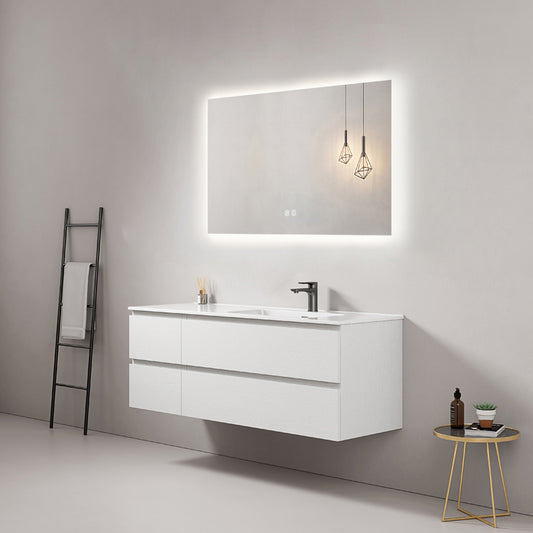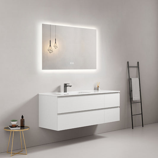 Mobile bagno sospeso 140 cm Bianco Lavabo a Sinistra in Resina Specchio Quadro Retroilluminato - Fiji Wood
